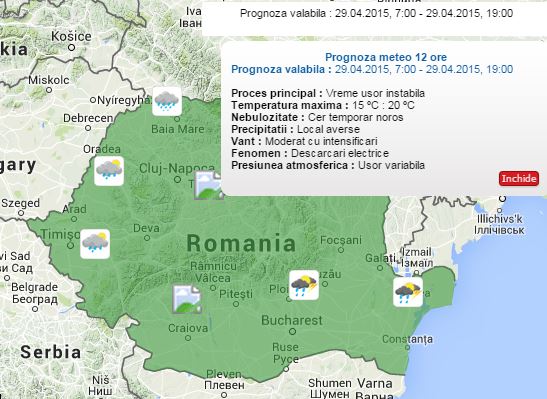 Cerul va fi temporar noros, vântul va mai prezenta unele intensificări, iar local se vor semnala averse însoţite de descărcări electrice.