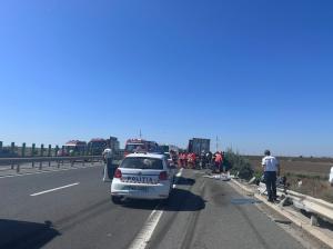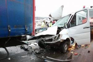Plan roşu de intervenţie. Zece persoane au fost rănite în urma coliziunii dintre un microbuz şi un TIR