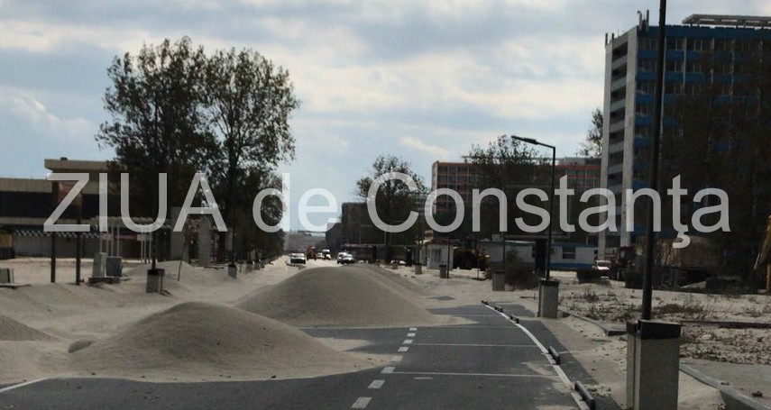 Imaginea imortalizată de noi, astăzi, surprinde promenada din staţiunea Mamaia, acoperită de nisip.Dunele de nisip s-au format în urma vântului puternic din ultimele zile, de pe litoral.