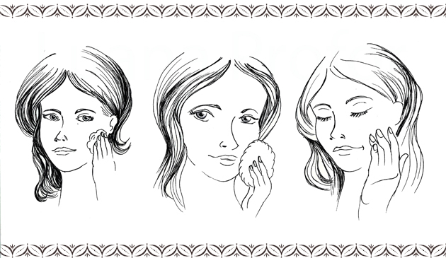 Pentru restabilirea mantalei acide a obrazului (pH-ului), acesta se va şterge cu lapte de castraveţi sau cu o loţiune tonică. Vom hrăni apoi obrazul cu o cremă care se potriveşte structurii lui masând uşor cu amândouă palmele, cu vârfurile degetelor, de jos în sus, în efleuraj. La gură vom masa cu degetele - arătătorul, mijlociul şi inelarul de la ambele mâini -, gen foarfecă, de o parte şi de alta a porţiunii dintre nas şi gură, insistând la colţurile ei.