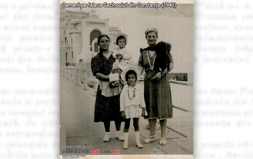 Trei generații, imortalizate în fața Cazinoului din Constanța. Trăsătura comună – eleganța, accentuată de somptuozitatea clădirii-simbol a orașului.Mai multe imagini ce înfățișează obiective importante de pe litoral puteți descoperi accesând secțiunea Cărți poștale din Biblioteca digitală ZIUA de Constanța.