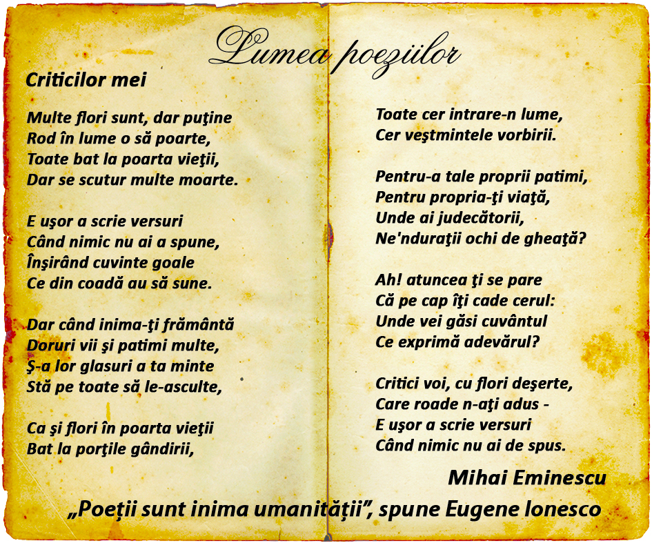 Lumea poeziilor Mihai Eminescu - Criticilor mei