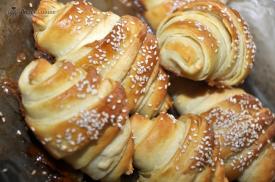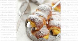 Cornuri pufoase umplute cu crema de piersici