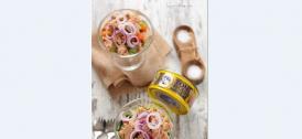 Mie imi plac mult salatele de legume cu peste, iar una dintre preferatele mele este aceasta minunata salata cu file de macrou Lotka, in ulei de floarea-soarelui, bucatele de mar, proumb si un mix de salate cu gust usor amarui. Combinatia este excelenta!
