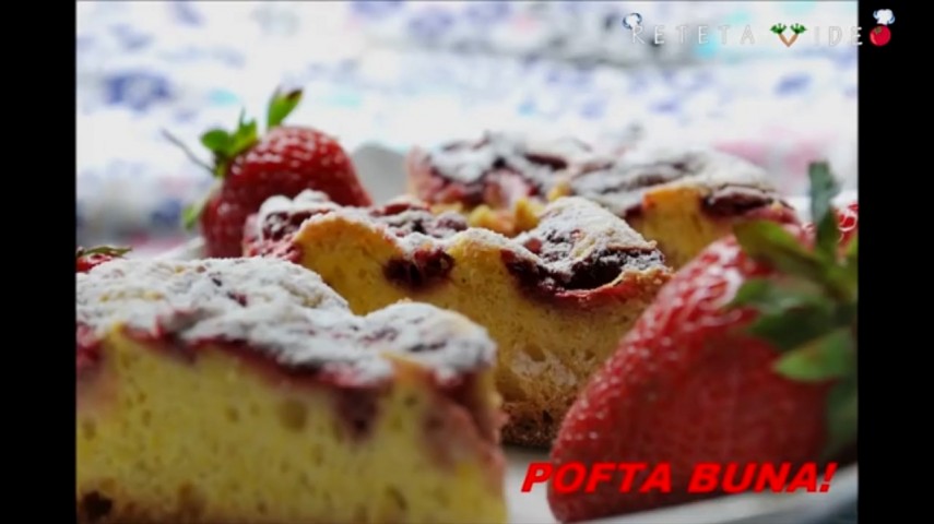 Este inca sezonul capsunilor, asa ca nici un week-end fara un desert cu capsuni. Daca ma gandesc bine, capsuni adevarate, cu gust si mai ales cu aroma, avem doar cateva saptamani pe an. Aceasta este prajitura cu capsuni pe care mama o facea mereu vara, atunci cand eram mica (o mai face si acum, dar nu reusesc sa ma bucur mereu de ea).