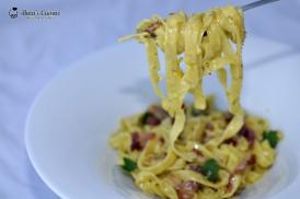 De cand sunt fericita posesoare a unei masini de facut paste, am cautat sa experimentez tot felul de combinatii care sa tina pasul cu productia de tagliatelle si fetuccine (deocamdata am un accesoriu doar pentru aceste doua modele, urmeaza achizitionarea altora). De departepreferatele mele, tagliatellele imi plac in special cu sosuri albe cremoase. Combinatia cu somon afumat, desi poate parea mai grea, este foarte light, nu sunt deloc gretoase. Gustos, rapid, ingrediente putine...optiunea perfecta pentru o cina in timpul saptamanii.