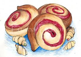 Se înmoaie drojdia cu o lingură de făină şi o linguriţă cu zahăr şi se pune la căldură să crească. Când a crescut, se adaugă peste restul de făină, se pun 3 gălbenuşuri şi 2 albuşuri spumă, se frământă bine şi se lasă la crescut. Intre timp se freacă bine untul cu zahărul, se amestecă şi stafidele. Când aluatul a crescut, se întinde o foaie pe planşetă, se unge cu tot untul şi stafidele; se rulează apoi foaia şi se taie felii groase cam de 3 cm, se aranjază în tavă îngustă şi lungă unsă cu unt. Se pun în picioare (cu partea tăiată în sus); se lasă tava la căldură ca să crească aluatul, apoi se introduce în cuptorul fierbinte dar cu focul mic. Când s-a copt se scoate şi se toarnă peste ei jumătate pahar lapte fierbinte îndulcit cu două linguriţe de zahăr. Se mai pune din nou în cuptor pentru 10 minute. Când este gata se pudrează cu zahăr pudră, de calzi.