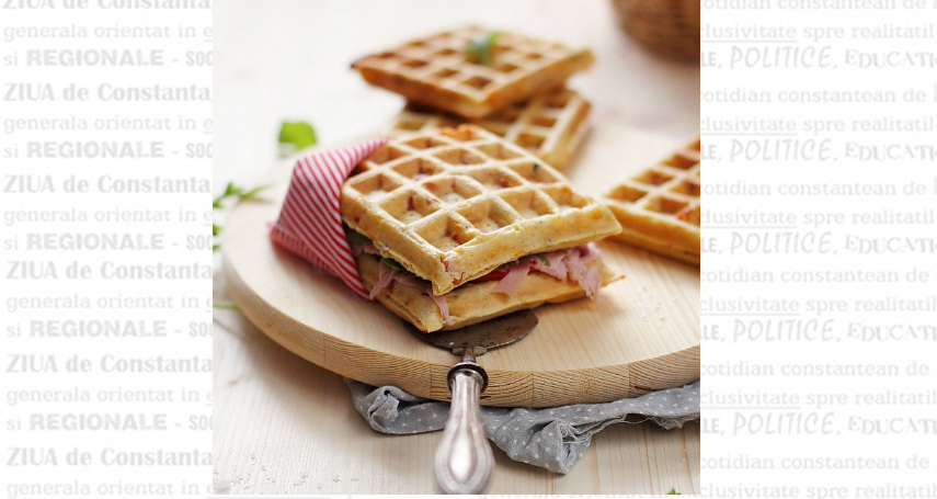 Waffe sarate cu sunca si cascaval – Ingrediente (6 bucati)150 g faina alba de grau