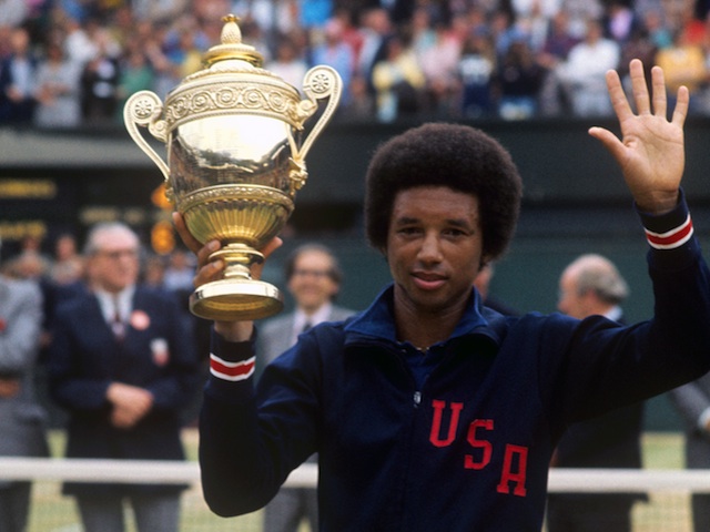 Pe 5 iulie 1975, Arthur Ashe a devenit prima persoană de culoare care a câştigat finala de la Wimbledon, învingându-l pe Jimmy Connors, care era favorit. Times scria la acea vreme că victoria lui Ashe s-a datorat şi comportamentului echilibrat al acestuia.În decursul carierei, Ashe a realizat numeroase premiere, fiind şi primul afro-american selectat pentru echipa Davis Cup a Statelor Unite ale Americii. În anul 1979, a suferit un atac de cord, iar un an mai târziu, s-a retras, terminând cariera cu 33 de titluri la simplu, inclusiv cu victorii la Australian Open şi Wimbledon.
