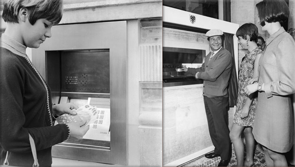 În scurt timp, a fost construit şi instalat dispozitivul la banca britanică, mai exact pe 27 iunie 1967. Prima persoană care a extras bani din bancomat a fost producătorul serialului „On the Buses“, Reg Varney. Un an mai târziu, a fost creat şi primul bancomat ce utiliza carduri bancare.
