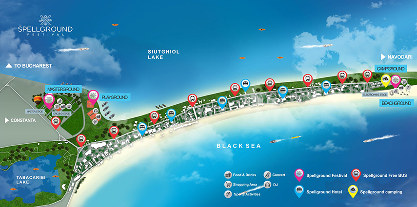 Schimbarea vine cu și mai multe vești bune: camping exclusiv Spellground cu vedere la mare și ieșire la plajă în Năvodari, transport gratuit cu double-decker între toate zonele pe toată perioada festivalului (pe baza brățării de acces), pachete de cazare la hotel cu abonament Spellground inclus (disponibile în curând), sporturi nautice, show-uri inedite de video-mapping și multe alte surprize.