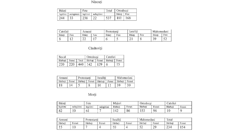 Actele de stare civilă după sex, stare civilă şi religiune se descompun astfel”: