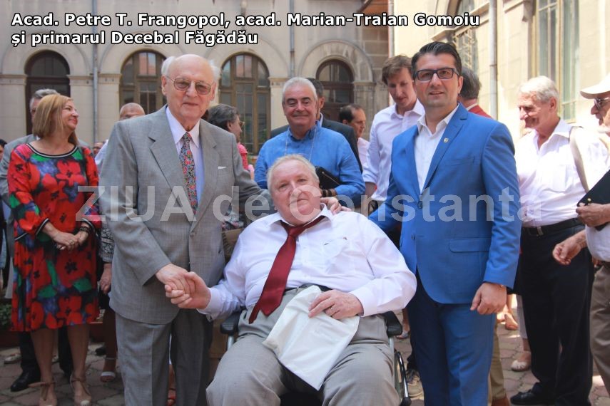 Astăzi avem onoarea să-i avem alături pe domnul academician Petre Frangopol, care în 1951, după ce a făcut doi ani într-unul, a devenit unul dintre cei mai tineri studenți, cu un parcurs fulminant și astăzi reprezintă un pilon al academiei Române. De asemenea, îl avem pe domnul academician Marian-Traian Gomoiu și mă uit la dânsul și încă aud vocea puternică și aspră de la prima întâlnire, pe care am avut-o cred că în urmă cu 15 ani, când, vremelnic, conduceam Complexul Muzeal de Științe ale Naturii și mergeam să învăț de la Institutul de Cercetare Marină, de la celelalte instituții de cultură din municipiul Constanța, de la oamenii care erau unanim recunoscuți.