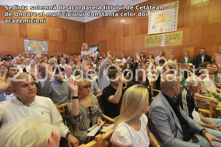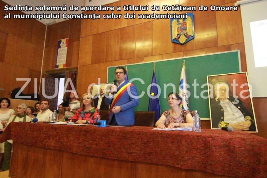 Ieri, în sala „Gheorghe Coriolan“ a Colegiului Național „Mircea cel Bătrân” s-a scris o altfel de pagină de istorie dobrogeană, cea a recunoștinței, așa cum afirma și primarul Decebal Făgădău în discursul său dinaintea procedurii de supunere la vot a acordării titlului de Cetățean de Onoare al municipiului Constanța celor doi savanți.