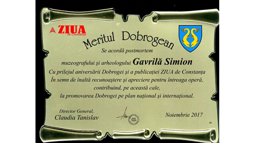 Dobrogea 139 de ani In memoriam Gavrilă Simion. O viață dedicată muzeologiei și arheologiei (18 noiembrie 1928-28 aprilie 2010)