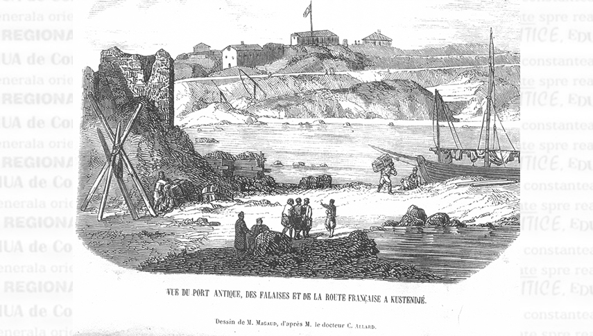 Capitolul al ll-lea se intitulează Kustendjé et lesrives de la Mer Noire (Kustendje și malurile Mării Negre). Jurnalul începe într-un stil direct, concis: „Pe 6 iulie, Army-andNavy, un mic pachebot închiriat de către intendenţa franceză, lăsa în urmă valul bicolor sub briza înserării. Trebuia într-adevăr să profităm de întoarcerea sa la Kustendjé pentru a ajunge în Dobrogea. Misiunea era însoţită de un detaşament de opt oameni, pe care Comandantul superior din Varna ni-l pusese la dispoziţie.» Autorul descrie noaptea pe coverta pasagerului, peisajele de pe mal, cunoaştedespre oraşul Balcic că s-a clădit pe ruinele anticului Dionysopolis, de Cap Caliacra, despre care scrie : „Sunt cunoscute serviciile pe care rada de la Cap Caliacra, apărată împotriva vânturilor de nord, le-a adus marinei franceze”. Oraşul Balcic este la intrarea în ţinutul Dobrogei, o largă regiune a stepelor din nord-estul Bulgariei. Citează din Ovidius « Lassus in extremis jaceopopulisquelocisque.Triste,l, lll,111». Cuprinde într-o singură frază imaginea Dobrogei: De pe puntea navei, Dobrogea ne-a apărut în toată goliciunea ei sălbatică”. Faleze aride din calcar, dune de nisip, lacuri întinse, păsări de apă, pelicani, un delfin jucăuş, şi deodată Constanţa: „OraşulKustendjé sau Kostendjé, situat pe o limbă de pământ în formă de liră şi pe o faleză înaltă, îşi etala altădată casele presărate pe ici pe colo; plaja îngustă, dar mai largă decât a Balcicului, păstra urmele unor mari magazine ale căror ruine acoperă malul. Kustendjé este încă cel mai bun port al acestei regiuni. Rada sa este nu este foarte bine adăpostită dar oferă condiţii bune, și este deschisă numai vânturilor de nord ». |