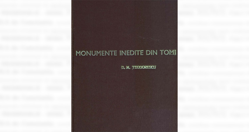 Cartea de faţă - „Monumente inedite din Tomi”, de D.M. Teodorescu, este visul oricărui arheolog. Apărută în anul 1915, este una dintre colecţiile de seamă cu imagini de vase de lut şi de stică, cu câteva fragmente arhitectonice şi cu un număr de monede, de la muzeul din Constanţa, de la vremea respectivă.O lucrare plină de imagini, aşa cum trebuie să fie o prezentare de monumente, din frumoasa cetate Tomis, peste care astăzi constănţenii îşi duc traiul de zi cu zi. Lucrarea cuprinde consistente informaţii istorice, care reflectă modul de viaţă al strămoşilot acestui teritoriu.