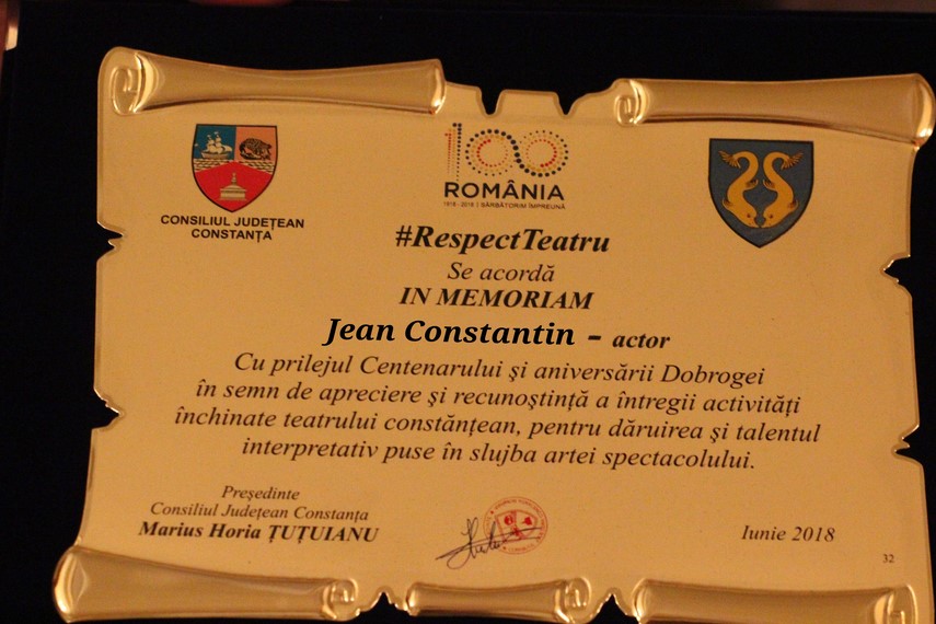 #RespectTeatru Medalia „Jean Ionescu“ şi placheta CJC #RespectTeatru, pentru actorul Jean Constantin (galerie foto)