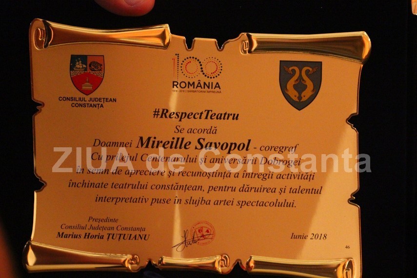 #RespectTeatru Medalia „Jean Ionescu“ şi placheta CJC #RespectTeatru, pentru coregrafa Mireille Savopol (galerie foto)