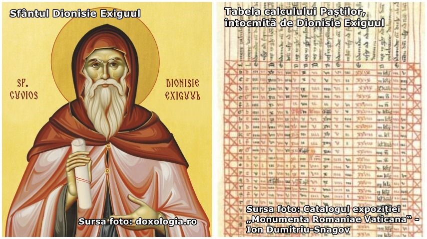 Surse foto: Imaginea Sf. Dionisie Exiguul - https://doxologia.ro/, tabela întocmită de Sf. Dionisie Exiguul - Catalogul expoziţiei „Monumenta Romaniae Vaticana“ – Ion Dumitriu-Snagov