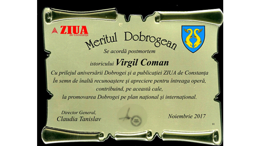 Dobrogea 139 de ani Laudatio Virgil Coman (1973-2016)