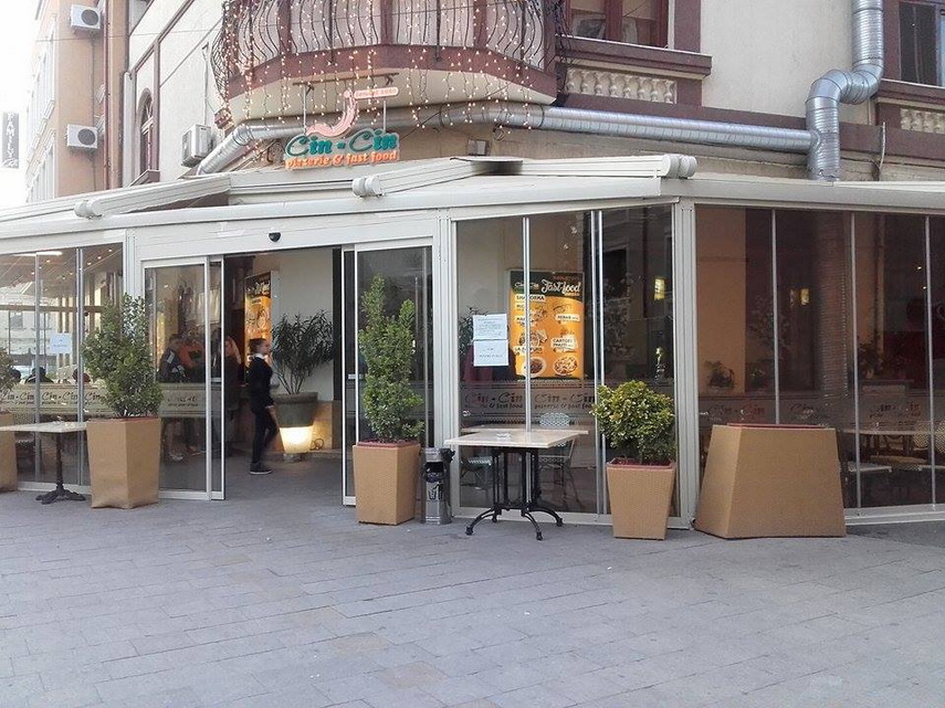 Cin-Cin Fast Food & Pizza este situat pe bulevardul Tomis numărul 28, lângă Muzeul de Artă Populară. Localul este mare, cuprinde două terase spaţioase şi trei saloane moderne, dispuse pe două etaje. Spaţiul este viu, colorat şi plin de clienţi de toate categoriile. Pentru că majoritatea susţin că la Cin-Cin se mănâncă bine şi ieftin.Meniul din restaurant este diferit faţă de cel disponibil pentru livrări la domiciliu. Aşa că, dacă mergeţi acolo, veţi găsi preparate din pui (23 - 40 de lei), preparate din porc (23 - 25 de lei), ciorbe (9 lei), pizza (18 - 25 de lei), platouri (17 - 90 de lei), aperitive (8 - 12 lei), sandwichuri (10 - 14,50 de lei), paste (15 - 22 de lei), peşte şi fructe de mare (12 - 25 de lei), produse de post (5 - 10 lei) sau salate (8 - 22 de lei). Un desert are preţuri cuprinse între 7 şi 11 lei, iar o cafea sau un suc costă 5 lei.