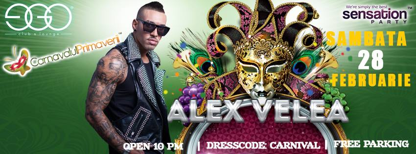 Sensation Media Group începe noul an în forţă cu unul dintre cele mai cunoscute evenimente ale acestei perioade, „Carnavalul Primăverii". Invitatul special al proiectului este Alex Velea, care se va întâlni cu publicul constănţean pe 28 februarie, începând cu ora 22.00, în Club EGO. Au fost puse în vânzare 1.000 de bilete.Originar din Craiova, Alex Velea este un cântăreţ de muzică dance, care şi-a descoperit pasiunea pentru muzică de la o vârstă fragedă. Dintre melodiile sale amintim „Yamasha”, „Dragoste la prima vedere”, „Când noaptea vine”, „Minim doi”.