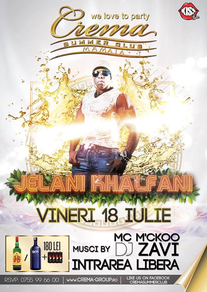 La Crema Summer Club, în această seară, de la ora 23.00, vor fi prezenţi Jelani Khalfani, artist internaţional şi fost membru al trupei Chippendales, şi Larisa Bercea, dansatoarea la bară care a impresionat juriul emisiunii „Românii au talent" în urmă cu doi ani. Responsabil cu muzica va fi DJ Zavi. Intrarea este liberă.Urmareste-ne pe Grupul de Whatsapp