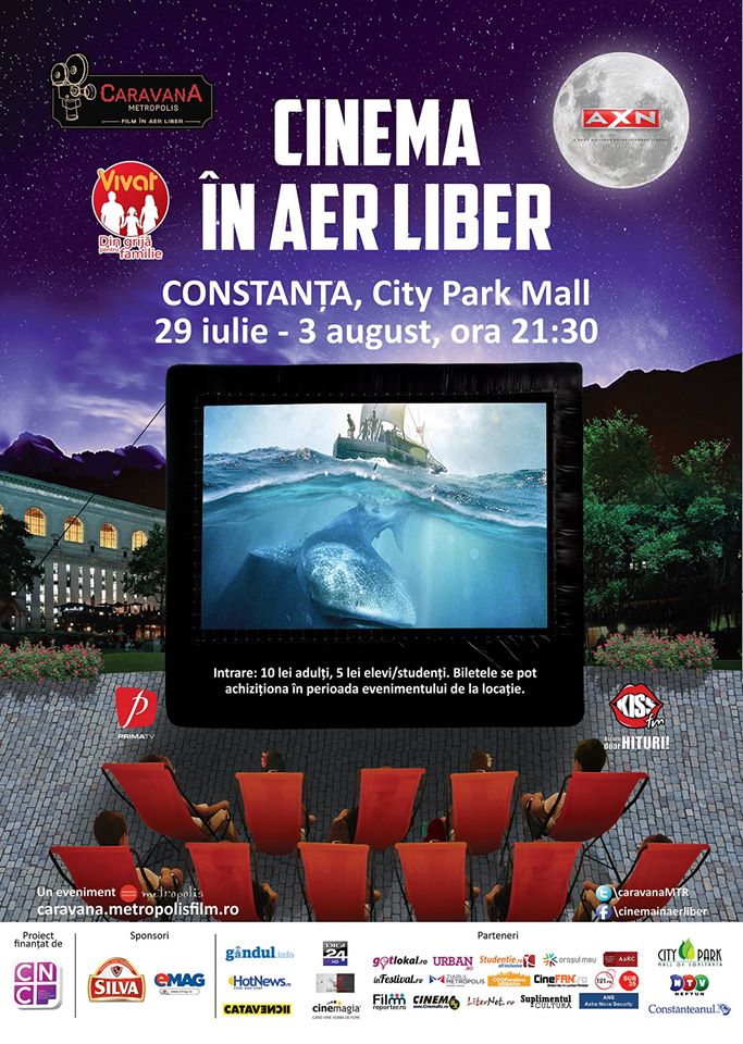 În perioada 29 iulie – 3 august, Caravana Metropolis – „Cinema în aer liber” ajunge la Constanţa, unde va instala cel mai frumos şi performant cinematograf de vară. O selecție impresionantă de filme, multi-premiate și aclamate de critici la festivaluri mari de film din lume în 2014, precum Cannes sau Berlinale, vor putea fi vizionate de către constănțeni în aer liber, în curtea din spatele complexului City Park Mall.Ajunsă la cea de-a treia ediție, Caravana Metropolis – „Cinema în aer liber” aduce la Constanţa cel mai performant echipament de proiecție în aer liber din România. Ecranul gonflabil de 120 m² și singurul proiector digital mobil din țară, de 17.000 lumeni, permit urmărirea filmelor la o calitate înaltă, întâlnită în marile cinematografe ale lumii.