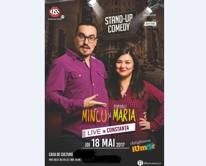 Maria Popovici și Alexandru Minculescu (Mincu), doi actori tineri care urcă des pe scena comediei, vor veni la Constanţa pentru a susţine un spectacol de stand-up comedy.De menţionat că Maria Popovici a câștigat a doua ediție a concursului „iUmor” și a rămas în „istoria” show-ului drept femeia pe care a lăudat-o Cheloo.