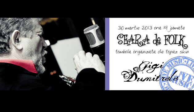 Bibliotheque anunţă pentru sâmbătă, 30 martie, de la ora 19.30, concertul folk al lui Gigi Dumitrele. Intrarea este liberă.