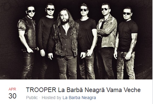 Trooper, o formaţie rock ce activează de 20 de ani, va concerta, pe 30 aprilie, în localul La Barbă Neagră din Vama Veche. Trupa a lansat opt albume de studio, a cântat pentru mai mult de 600.000 de oameni, în peste 500 de concerte. Ultimul album Trooper se numeşte „În ziua a opta" şi a fost lansat pe 5 noiembrie 2016.