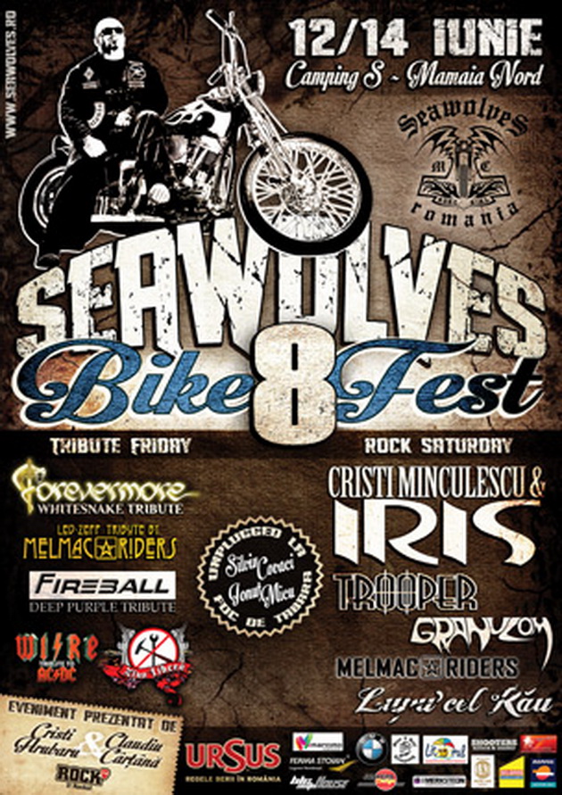 Sute de motociclişti din ţară vor urca pe motoare pentru a ajunge pe litoralul românesc, unde vor petrece trei zile pline de rock, folk şi bere. Seawolves Bike Fest, eveniment ajuns la cea de-a VIII-a ediţie, se va desfăşura în weekend-ul 12 - 14 iunie, în Camping S din Mamaia Nord.Ca în fiecare an, organizatorii garantează acelaşi nivel de distracţie. Nu vor lipsi dozatoarele de bere rece, tăria de întâmpinare, concursurile cu premii serioase, concertele rock, ţinute pe o scenă de 50.000 de waţi, folk-ul şi cântările haiduceşti în jurul focului de tabără, parada moto, artificiile, dar nici late night show-ul interzis minorilor şi inimilor slabe. Seara de vineri, 12 iunie, va fi dedicată „monştrilor“ rockului clasic: Led Zeppelin, Deep Purple, Whitesnake, AC/DC. Sâmbătă, 13 iunie, pe scenă va urca IRIS, formaţie reunită după trei ani, care va concerta în formula care a consacrat-o: Cristi Minculescu, Nelu Dumitrescu, Valter Popa, Boro şi Relu Marin.