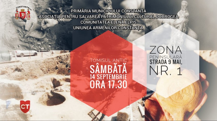 Primăria Municipiului Constanța alături de Asociația pentru Salvarea Patrimoniului Cultural Dobrogea, Comunitatea Elenă Elpis și Uniunea Armenilor din Constanța invită constănţenii să afle povestea vestigiilor arheologice excepționale descoperite în urma lucrărilor efectuate în Zona Peninsulară, pe str. 9 Mai, nr. 1.