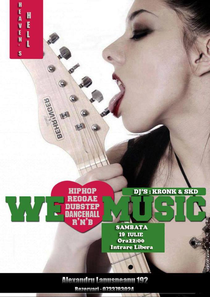 În seara aceasta, petrecerile continuă la Heaven’s Hell, de la ora 22.00, urmând să aibă loc evenimentul „We love music”, în cadrul căruia responsabil cu muzica va fi DJ Kronk, dar şi SKD. Cei prezenţi vor asculta melodii din diverse genuri muzicale, precum hip hop, reggae, r’n’b, rock, dancehall, dubstep. Intrarea este liberă.Urmareste-ne pe Grupul de Whatsapp