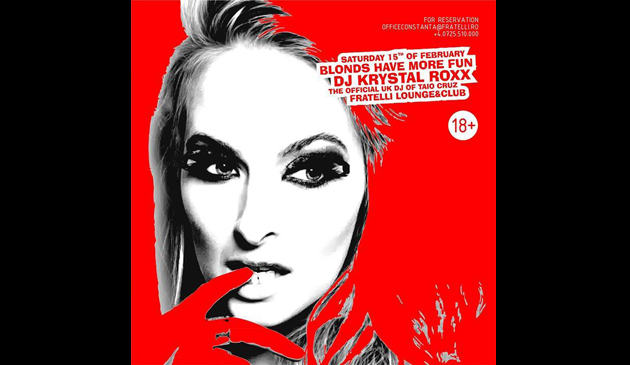 Krystal Roxx vine din UK, de la Hed Kandi, unde este DJ rezident, în Fratelli Constanţa.Krystal Roxx este cunoscută în cluburi precum Merah, Cafe de Paris, Bungalow 8, The Hoxton Pony şi Ministry Of Sound.