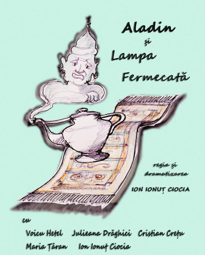 Mâine, 14 iulie, de la ora 21.00, la Teatrul de Vară Jupiter, va avea loc un spectacol dedicat atât copiilor, cât şi adulţilor, şi anume „Aladin şi Lampa Fermecată”, în regia lui Ion Ionuţ Ciocia.Din distribuţie fac parte actorii Voicu Hetel, Julieana Drăghici, Cristian Creţu, Maria Ţăranu şi Ion Ionuţ Ciocia. Preţul unui bilet este de 20 de lei.