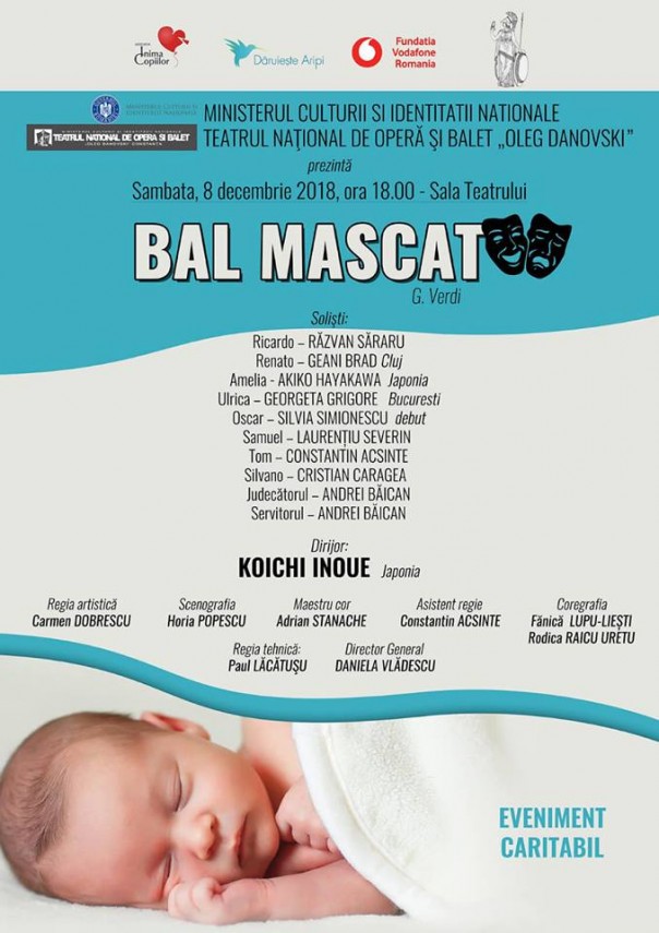 Asociația Dăruiește Aripi în parteneriat cu Grupul de Inițiativă Minerva are bucuria de a anunța organizarea unui eveniment caritabil cu participarea artiștilor de la Teatrul Național de Opera și Balet "Oleg Danovski" Constanța care vor susține Spectacolul de Opera „BAL MASCAT“ de Giuseppe Verdi.