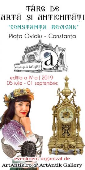 Iubitorii de artă și colecționarii sunt așteptați vineri, 5 iulie, de la ora 11:00, în Piața Ovidiu, la deschiderea celei de-a IV-a ediții a Târgului de Artă și Antichități ”Constanța Revival”.20 de artiști și colecționari din toată țara vor oferi spre vânzare o gamă foarte variată de obiecte de artă, bijuterii de epocă, bijuterii și decorațiuni handmade, viniluri, colecționabile și antichități din toate colțurile lumii.