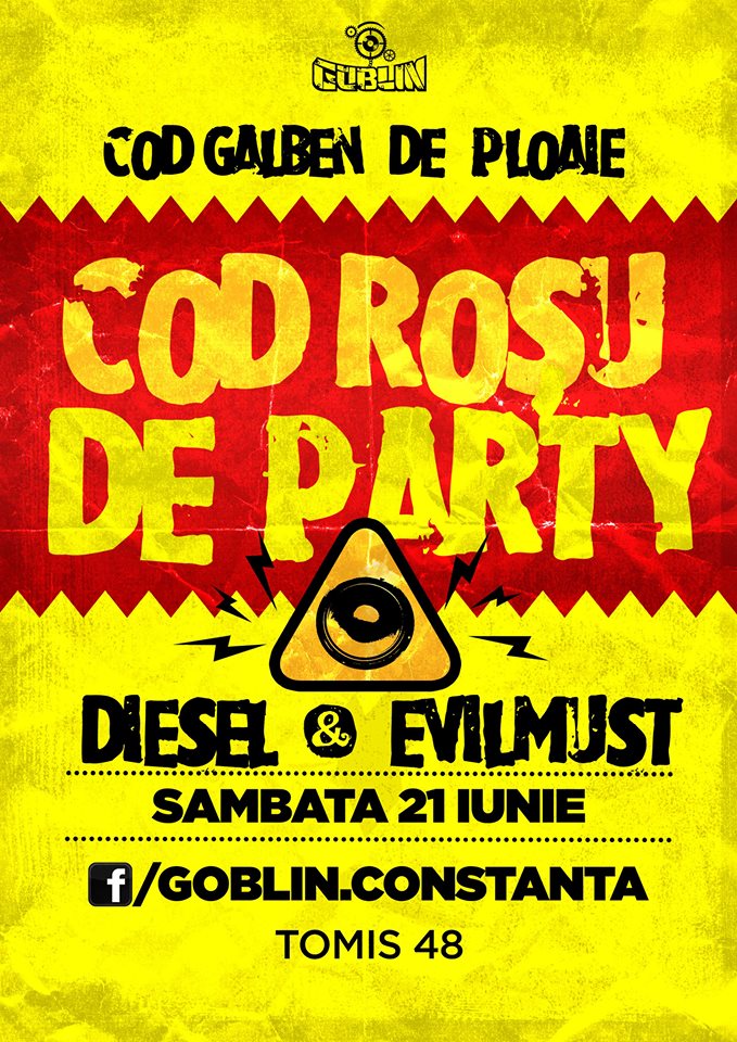 La Clubul Goblin din Constanţa, în această seară, pe 21 iunie, de la ora 22:00, va avea loc petrecerea „Cod Galben de ploaie, Cod Roşu de party”. În cadrul evenimentului, vor mixa DJ Diesel şi DJ Evilmust.Intrarea este liberă.