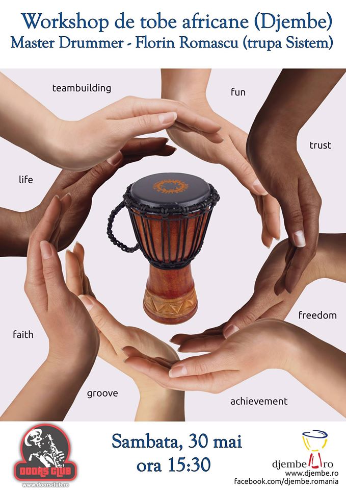 Florin Romaşcu, component al formaţiei Sistem, vine la malul mării cu un workshop inedit de tobe africane (djembe). Evenimentul este programat în clubul constănţean Doors, sâmbătă, 30 mai, începând cu ora 15.30.Cursurile de tobe africane reprezintă o modalitate rapidă şi naturală de a dezvolta anumite capacităţi sau de a relaxa participanţii. O sesiune este formată din două reprize de 40 de minute, cu o pauză de 20 de minute. „Prima repriză este cea de acomodare şi de cunoaștere a pulsului ritmic interior şi exterior (al lumii tale interioare care se mișcă în cea din exterior). În a doua repriză încercăm să stimulăm creativ ritmul personal şi să-l dinamizăm sau să-l temperăm după cum este cazul”, precizează organizatorii pe pagina oficială a evenimentului.
