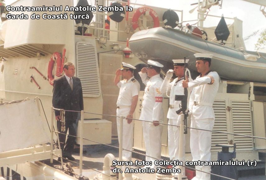 Contraamiralul în retragere dr. Anatolie Zemba este un interlocutor pe cât de volubil pe atât de franc. Născut la 12 mai 1941, în localitatea Albineți, județul Bălți din Republica Moldova, domnia sa a absolvit Liceul Militar de Marină din Galați (1959), Școala Militară Superioară de Marină (1963), Cursul de comandanți de navă de rangul 3 (1971, locul I), Academia Militară Generală, Facultatea de Arme, Secția Marină (1974, locul III), Academia de Studii Economice, Facultatea Economia Producției, Secția Economia Industriei, Construcțiilor și Transporturilor, București (cursuri fără frecvență, 1971) și Cursul post-academic de Analiști de stat major (1980, locul I).
