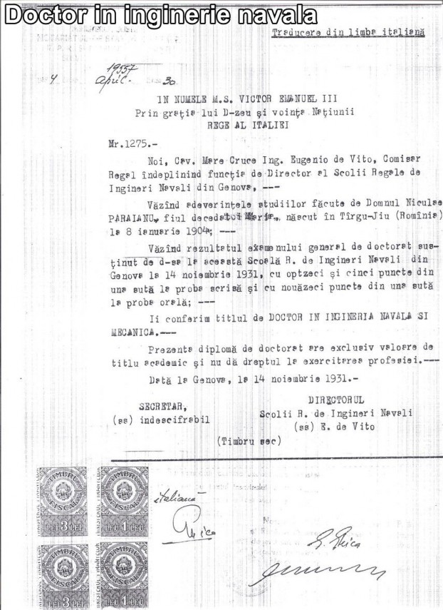 - Orac Neculai 09 Jan, 2022 12:30 L-am avut pofesor la specialitatea MASINI si INSTALATII NAVALE. in anul IV,la Inst.Politehnic Galati,Fac. de Mecanica ,sectia NAVE si INSTALATII de BORD. UN MARE OM !!!. In anul 2008 la 55 de ani de la absolvirea promotiei(1958),am scris o ODA profesorilor nostri ,6 strofe (cele mai multe) fiind dedicate Profesorului N. Paraianu. Oda a fost prezentata si la Univ."Dunarea de JOS" din Galati ,in anul 2021 cu prilejul aniversarii a 70 de ani de invatamant superior naval la Galati .