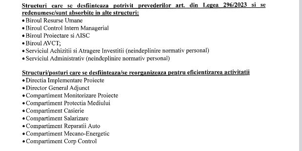 Structuri propuse spre desființare/redenumire/absorbire