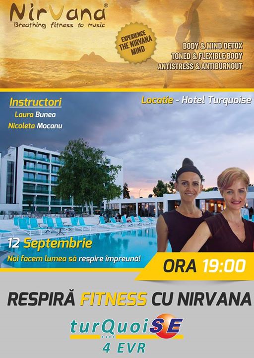 Un amestec de ritmuri muzicale pozitive, pe care se efectuează exerciţii de tonifiere şi tehnici de respiraţie, gândite ca o soluţie ideală pentru a elimina stresul zilnic. De toate acestea vor avea parte, sâmbătă, 12 septembrie, constănţenii care doresc să îmbine relaxarea cu mişcarea, începând cu ora 19.00.Aşadar, Hotel Turquoise din staţiunea Venus lansează o invitaţie la relaxare prin sport, alături de Nicoleta Mocanu şi Laura Bunea, care vin special pe litoral pentru a prezenta conceptul de Nirvana Fitness. „Fermecătoarele ritmuri chillout, însoţite de sunetele respiraţiilor, vă spun exact cum să respiraţi în momentul fluxului de exerciţii, toate însoţite de undele Teta, care influenţează direct centrul de relaxare, prin procesul de «antrenare a creierului»”, precizează organizatorii.