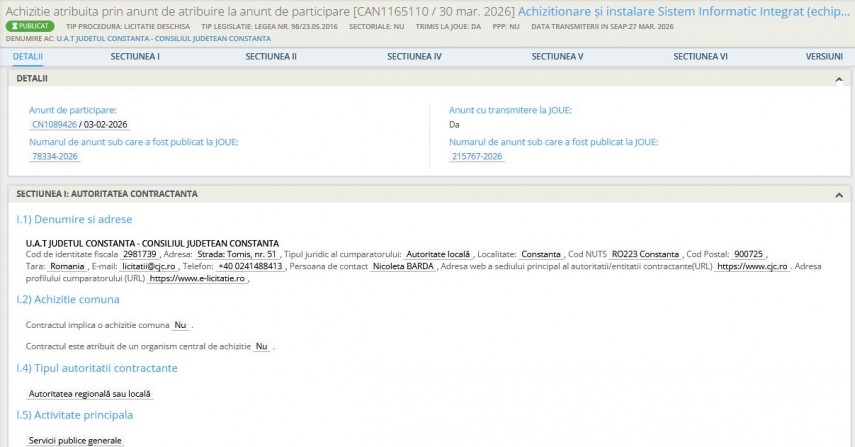 Achiziții Constanța Consiliul Județean Constanța a atribuit o licitație pentru dotarea digitală a Spitalului Clinic Județean de Urgență „Sfântul Apostol Andrei” Constanța (DOCUMENTE)