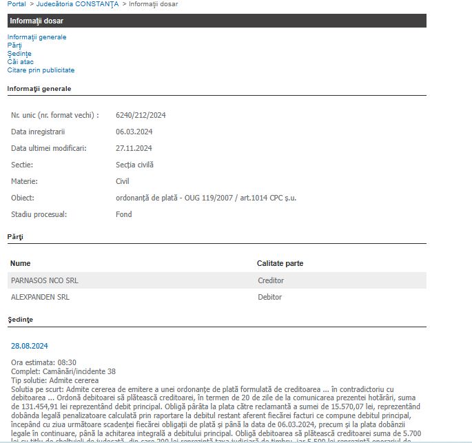 Date din dosarul nr. 6240/212/2024 de la Judecătoria Constanța