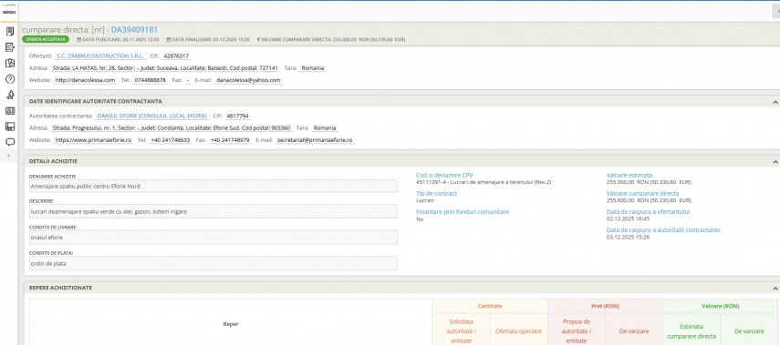 Cumpărări Directe Constanța Consiliul Local Eforie a bătut palma cu Zimbruconstruct SRL! Ce servicii vor fi furnizate pentru aproximativ 400.000 de lei (DOCUMENT)