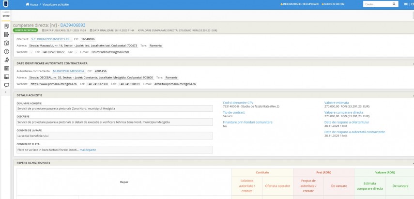 Cumpărări Directe Constanța Firma unui fost consilier județean la CJ Botoșani, cercetat pentru fapte de corupție, se ocupă de proiectarea pasarelei pietonale Zona Nord din municipiul Medgidia (DOCUMENT)