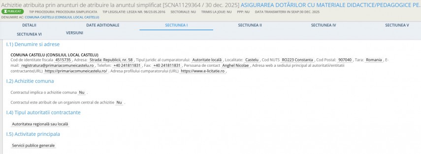 Cumpărări directe Constanța Școala gimnazială din Castelu va fi dotată cu material didactic (DOCUMENTE)